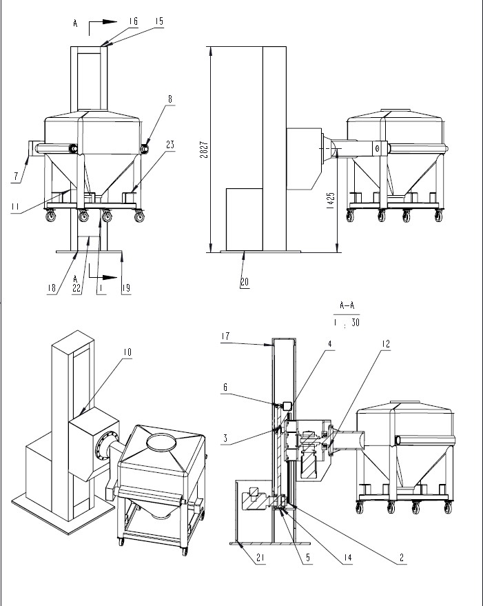 本機可以與其他設備周轉物料完成密閉輸送物料。